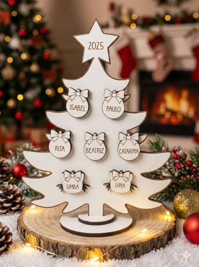 Deixe seu Natal ainda mais especial com nossas árvores de Natal personalizadas! Criadas com design único e personalização a laser, elas podem incluir nomes, mensagens ou temas exclusivos, tornando sua decoração cheia de significado.