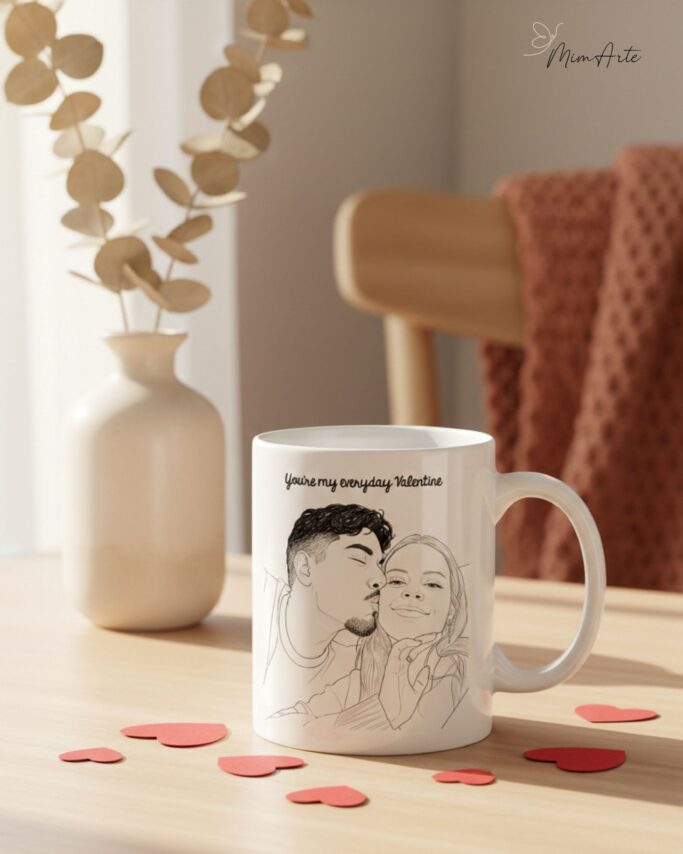 A nossa caneca personalizada para o Dia dos Namorados transforma a vossa história numa ilustração delicada e minimalista, criada a partir de uma fotografia do casal.